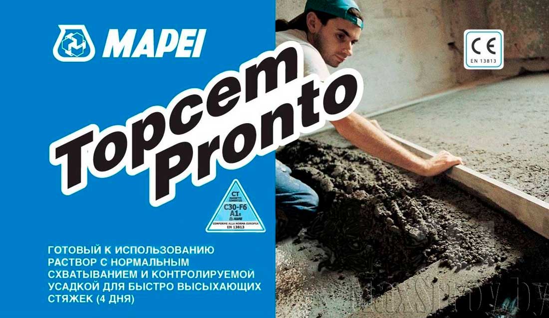 Соотношение смеси:  1,7 литров воды на 25 кг (мешок) Topcem Pronto